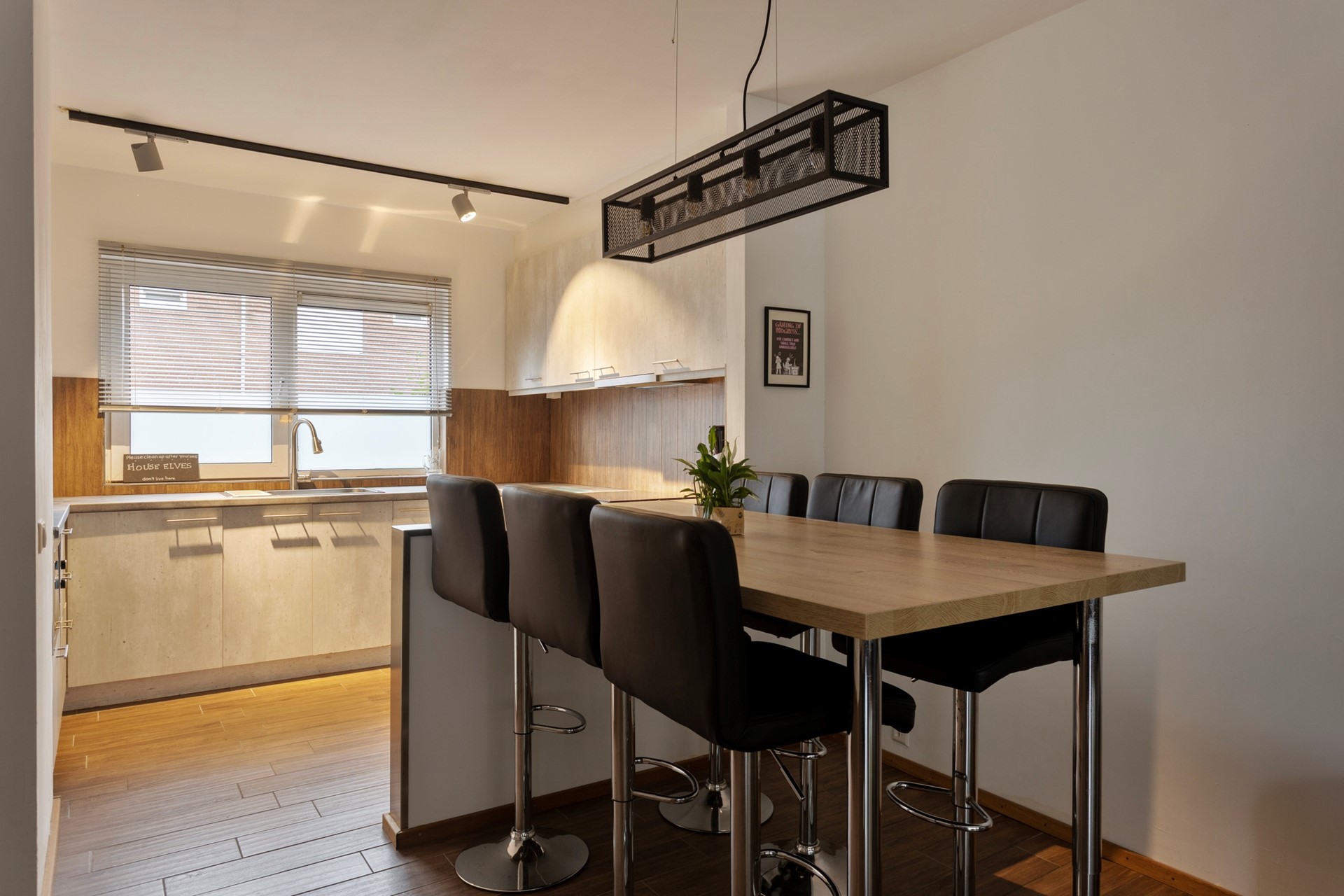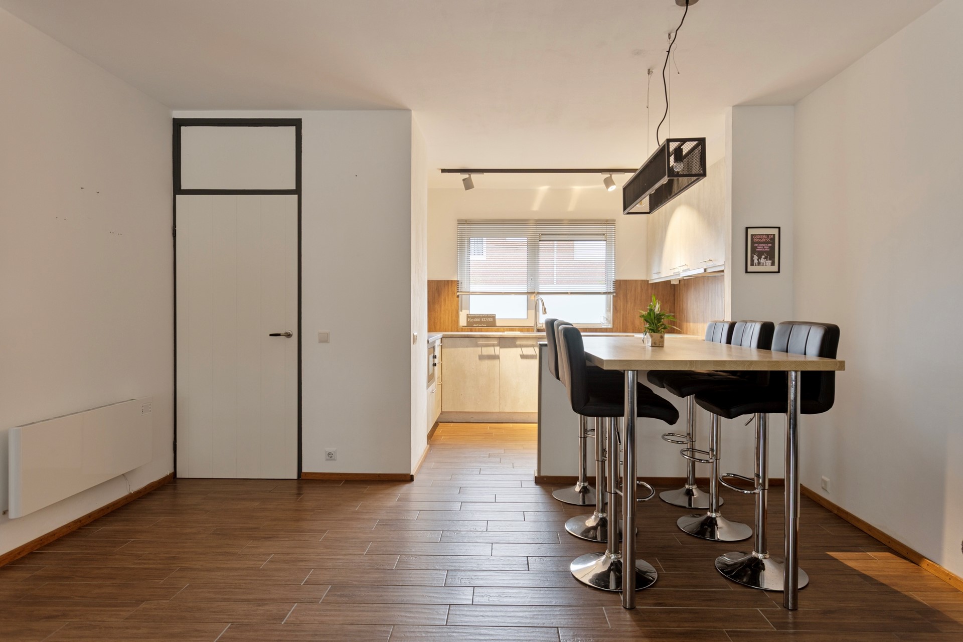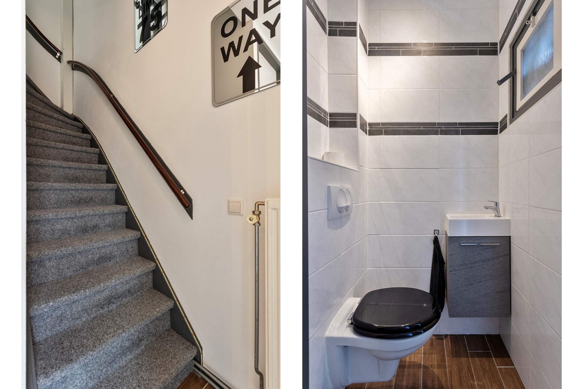 Via de entree kom jij in de hal met toiletruimte. De lichte woonkamer beschikt over grote raampartijen en een deur naar de achtertuin. Een praktische trapkast biedt extra bergruimte. De open keuken in U-opstelling is uitgevoerd in een lichte kleurstelling en uitgerust met een inductiekookplaat, afzuigkap, vaatwasser, combimagnetron, koelkast, diepvries en plintboiler. Hal, woonkamer en keuken zijn afgewerkt met een stijlvolle tegelvloer in houtlook met vloerverwarming.