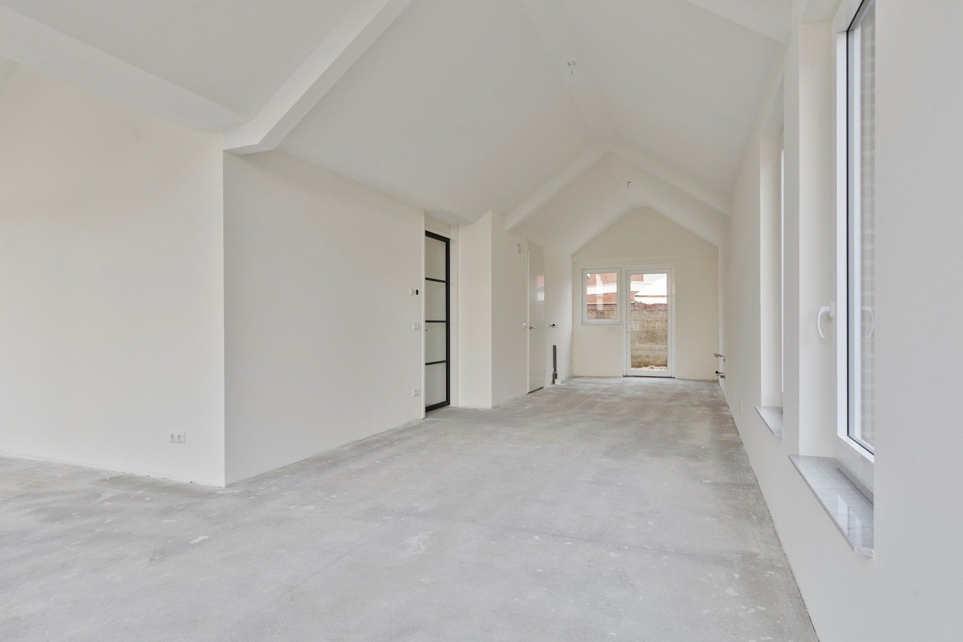 Binnen ervaar je direct ruimte en licht. Dankzij de hoge plafonds en grote raampartijen voelt de woning heerlijk open en worden de seizoenen letterlijk naar binnen gehaald. Een perfecte basis om geheel naar eigen smaak af te werken.
