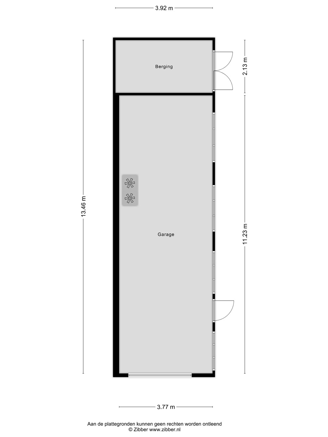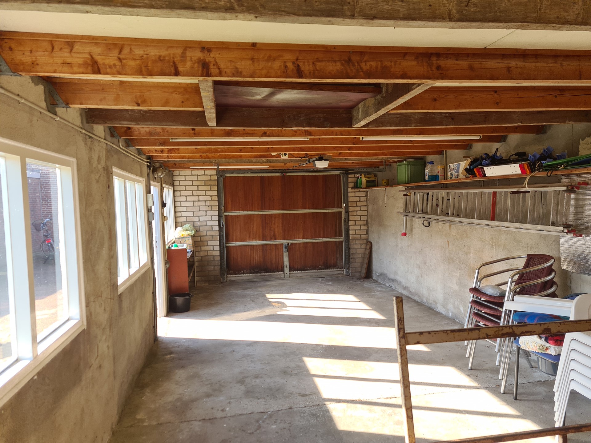 De vrijstaande garage (ca. 42 m²) is voorzien van een elektrisch bedienbare kantelpoort en een zijdeur. Achter de garage bevindt zich bovendien een extra berging.