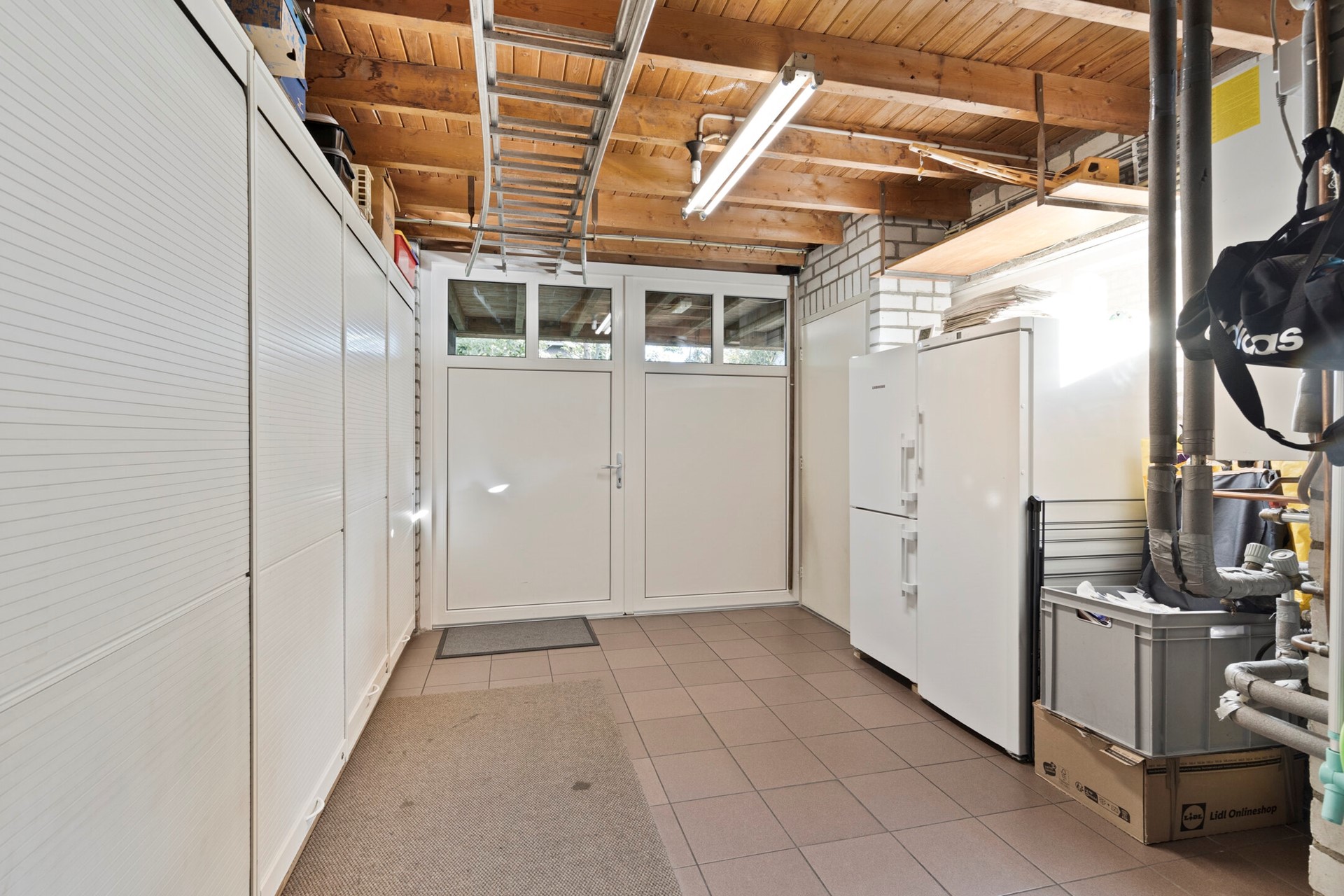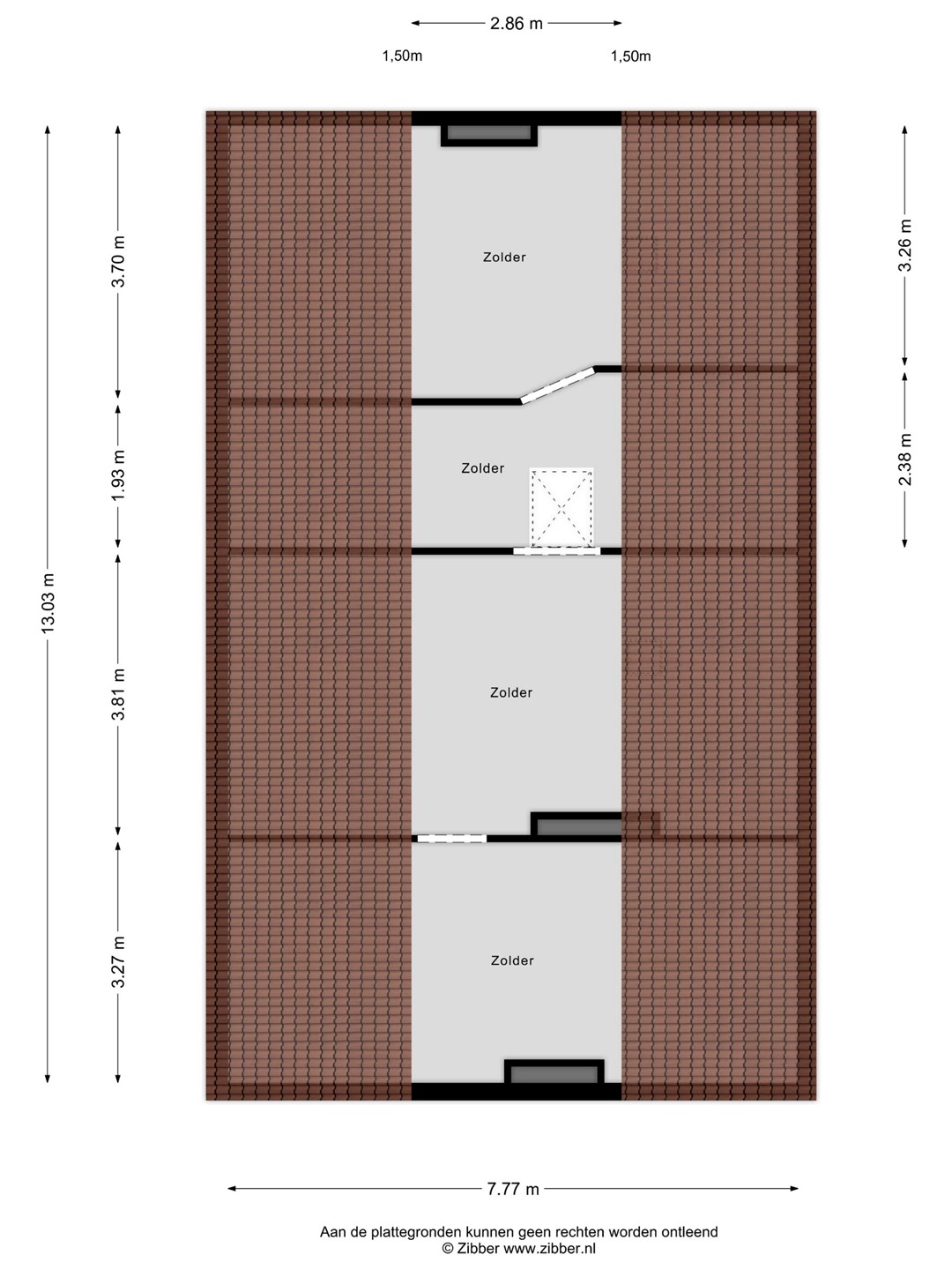 Via een vlizotrap bereikt u de ruime bergzolder, die is opgedeeld in vier compartimenten.