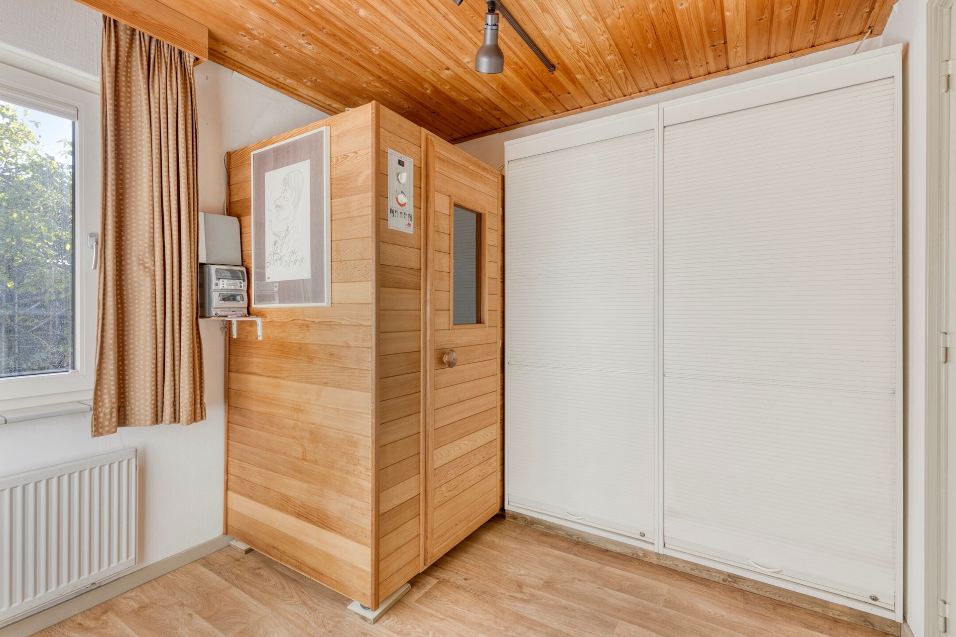 Aansluitend vindt u de lichte serre/woonkamer met grote raampartijen en een lichtkoepel, die een prachtig uitzicht biedt op de achtertuin. Ook hier zorgt de tegelvloer met vloerverwarming voor een aangenaam wooncomfort. De opkamer/werkkamer beschikt over praktische kastruimte en de kelder van ca. 13 m² biedt volop bergruimte.”