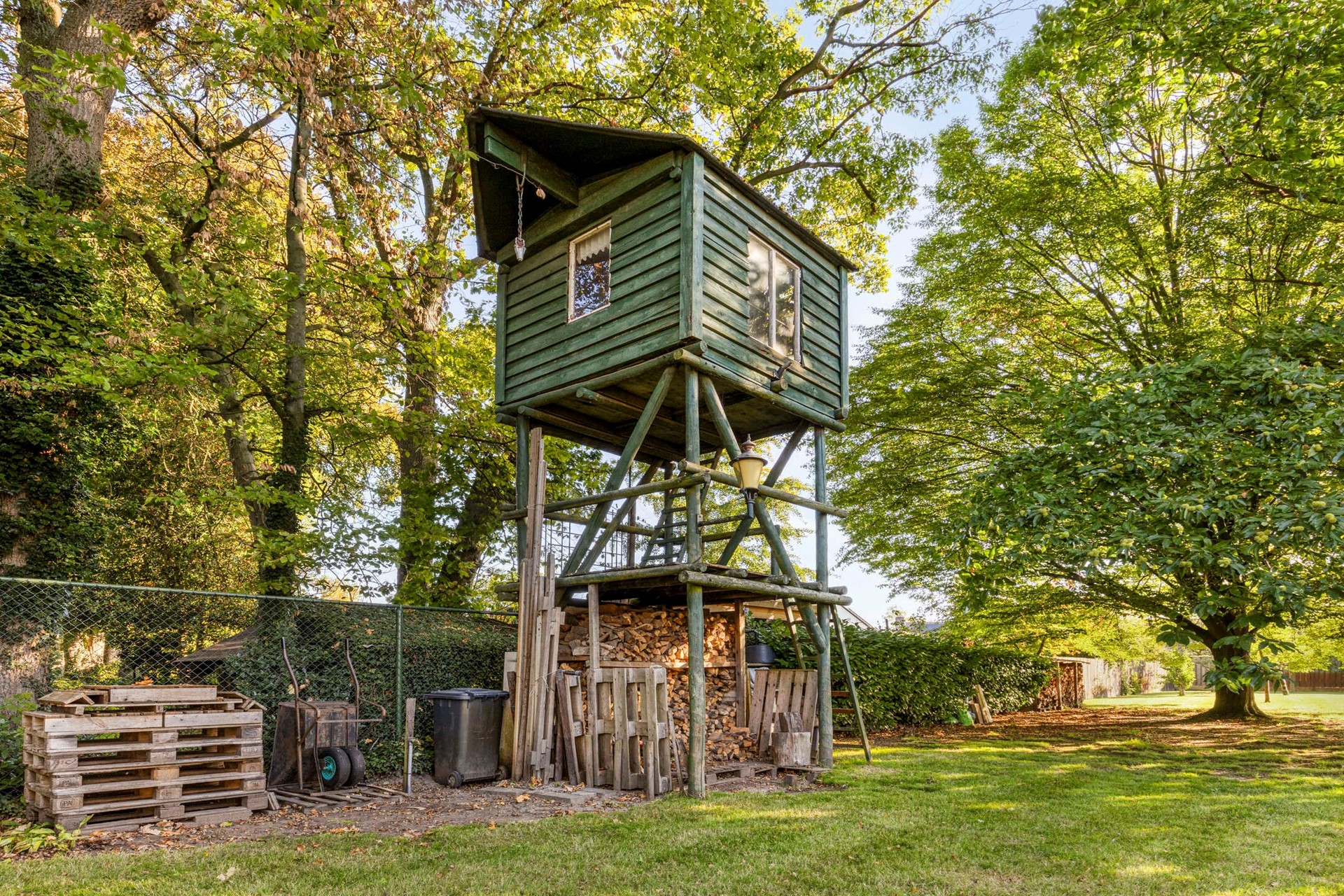 Direct achter de woning ligt een terras, gevolgd door de indrukwekkend diepe tuin met gazon, vijver, volwassen bomen en helemaal achterin een tuinhuis. De tuin biedt volop privacy en is een heerlijke plek om te genieten van rust en ruimte.