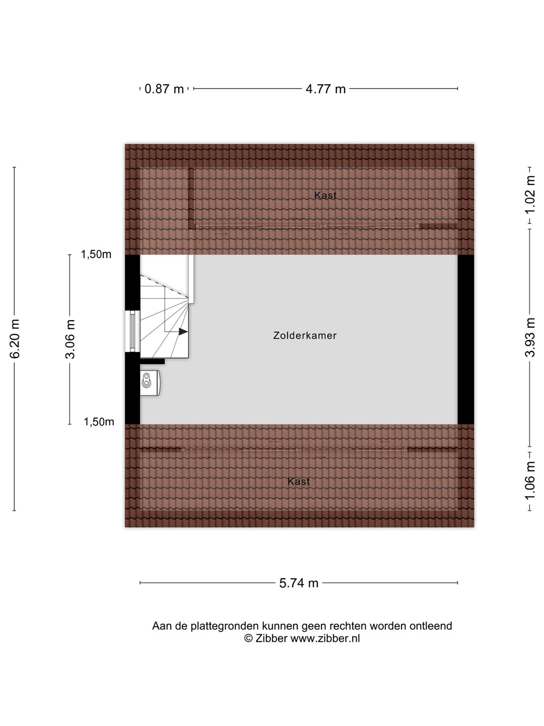 De zolder is bereikbaar via een vaste trap en bestaat uit een ruime open zolderkamer met aan beide zijden bergruimte onder de kapschuinte. Deze ruimte biedt de mogelijkheid om een extra kamer te realiseren.