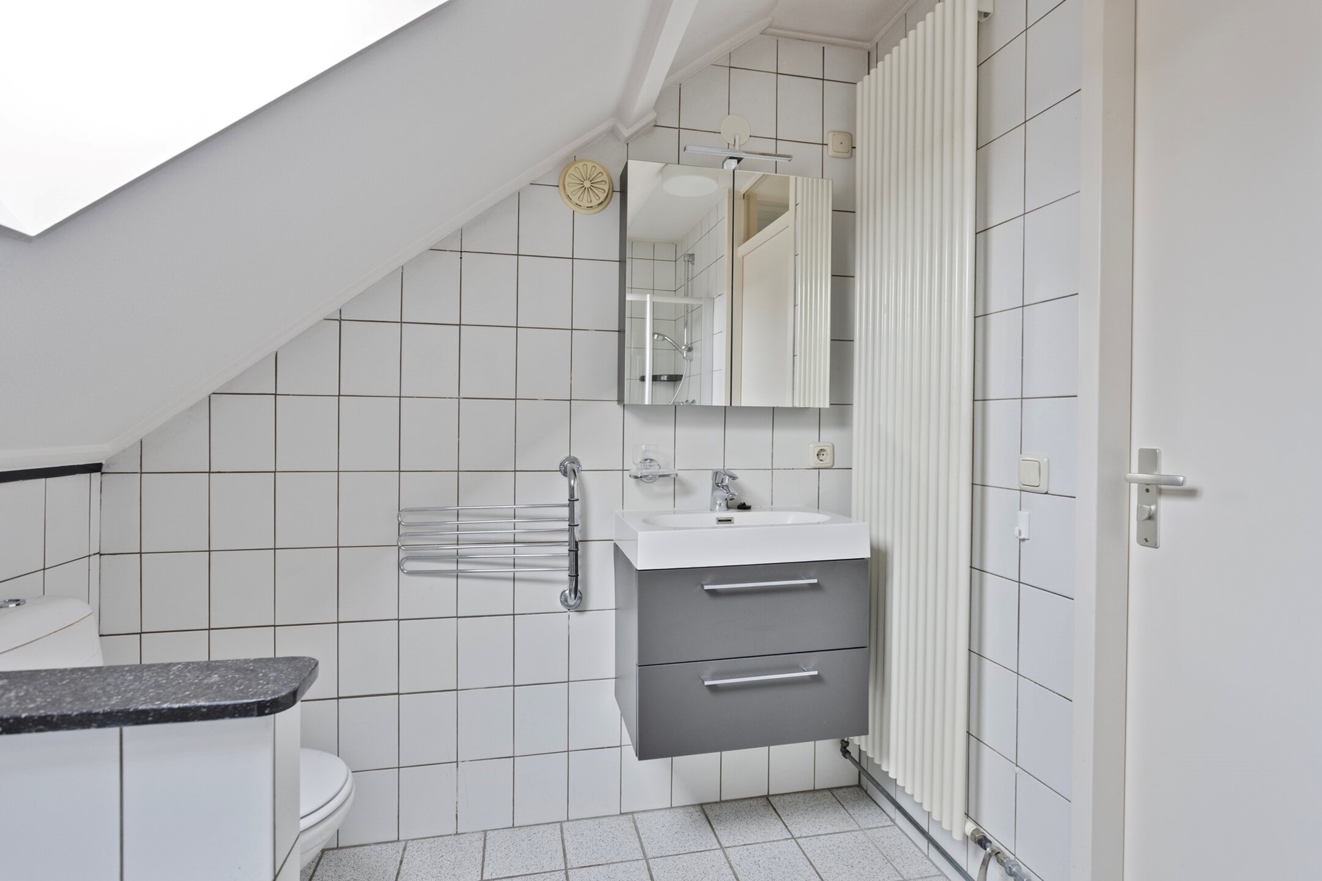 Daarnaast bevinden zich hier de CV-installatie (Vaillant, 2017) en de aansluitmogelijkheden voor wasmachine en droger.