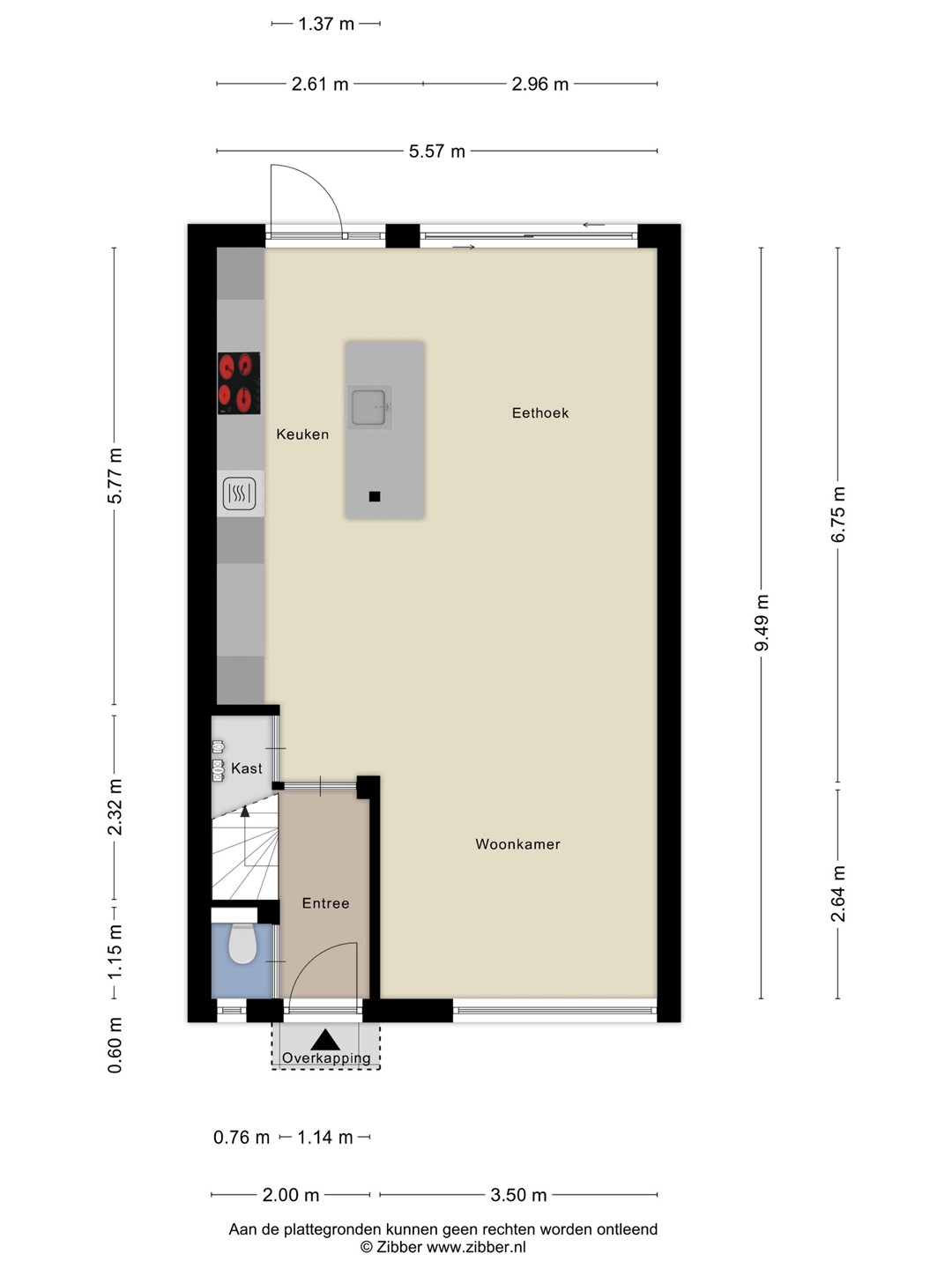 Onder de trap bevindt zich een verdiepte trapkast met daarin de meterkast, voorzien van 7 groepen, aardlekschakelaar en krachtstroom.